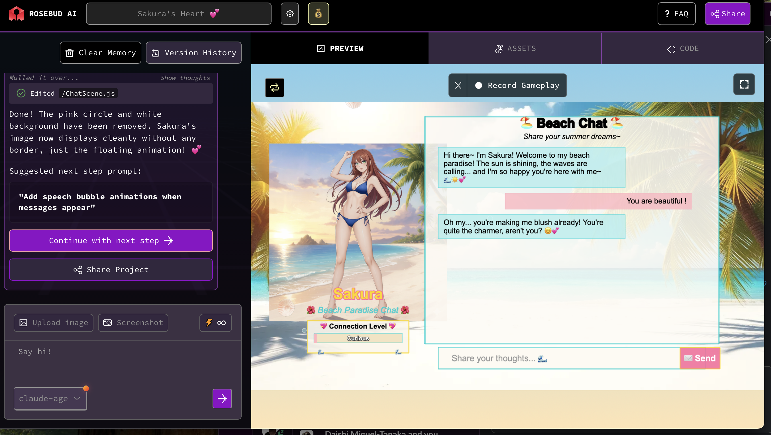 Rosebud AI allows creators to build anime-style AI chat games without coding, making it especially well-suited for romance and character-driven experiences.