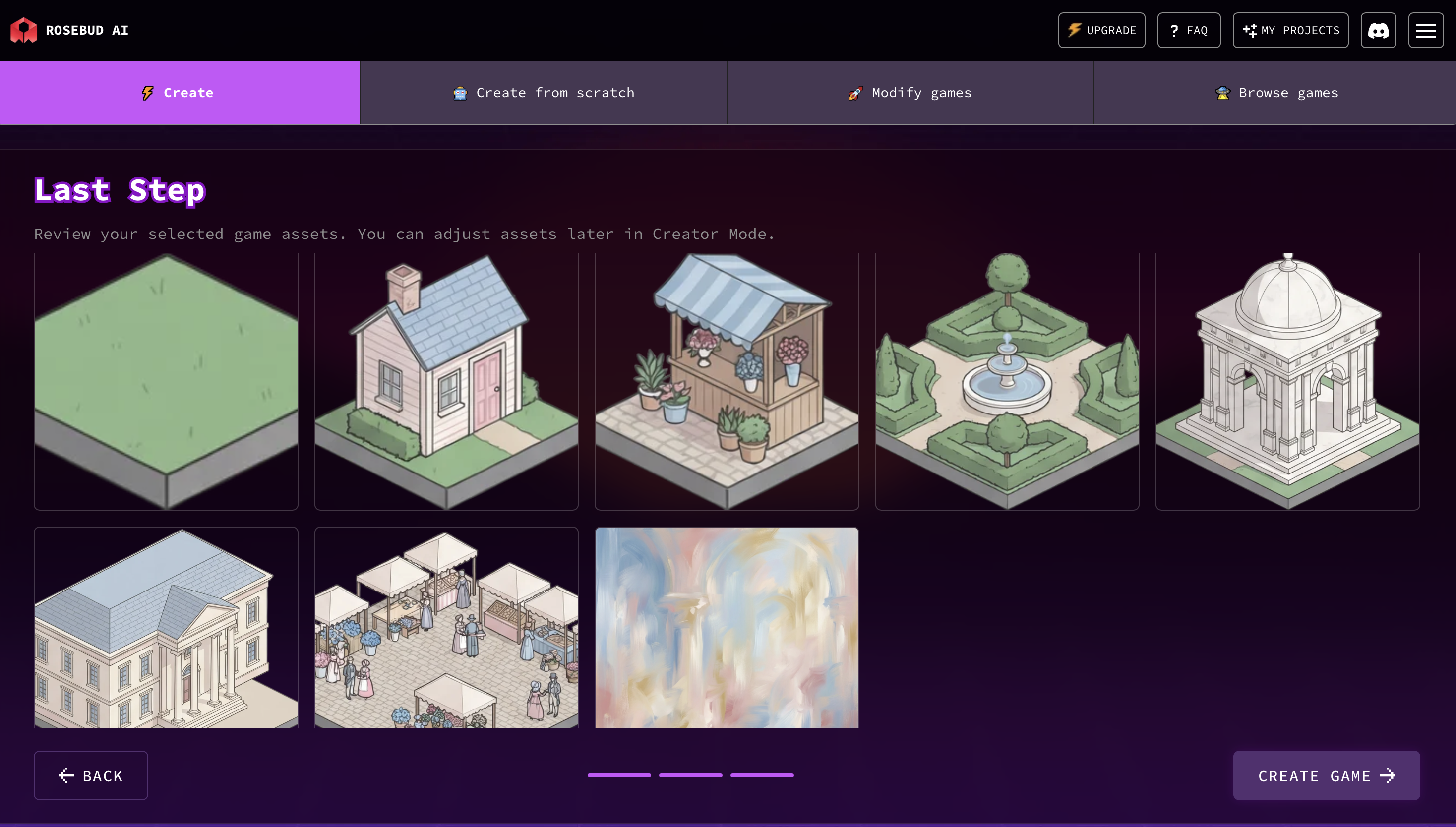 3. Review assets and create your game
