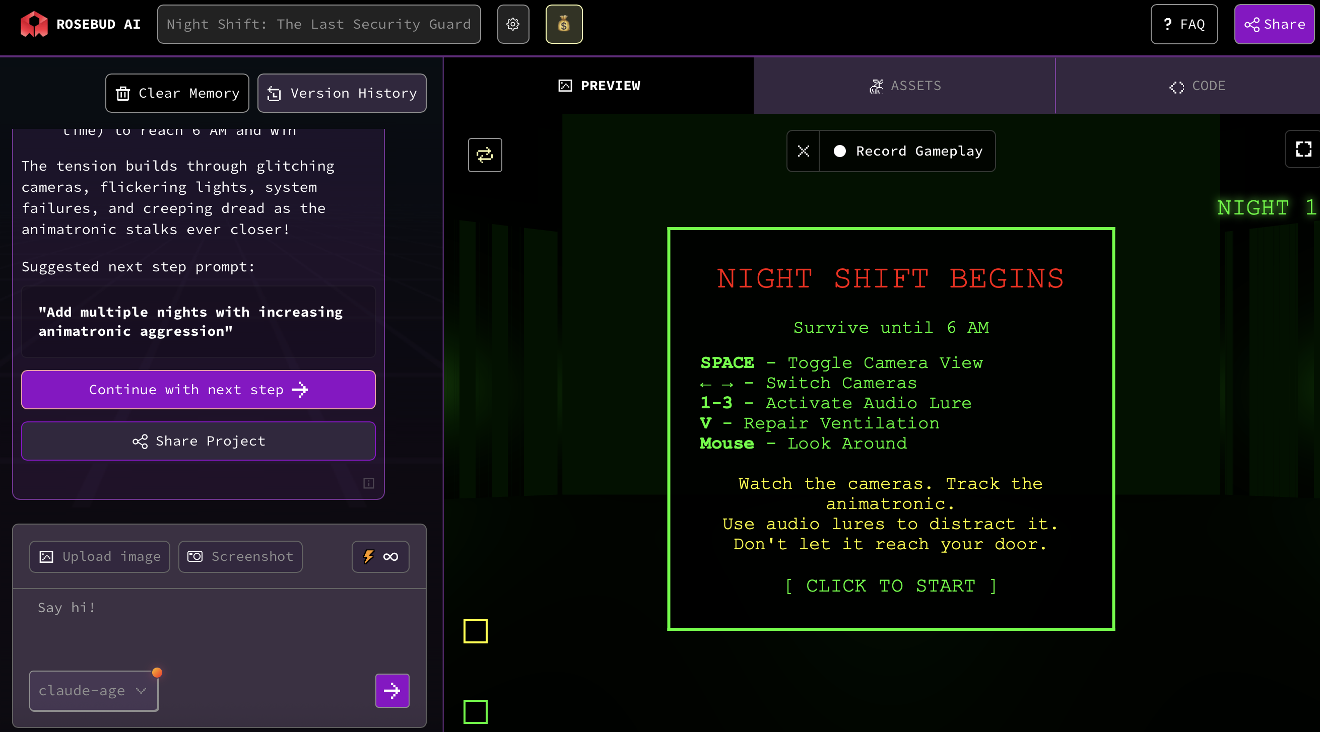 Part 2 — How to Play a FNaF-Style Game for Free by Creating Your Own with Rosebud AI