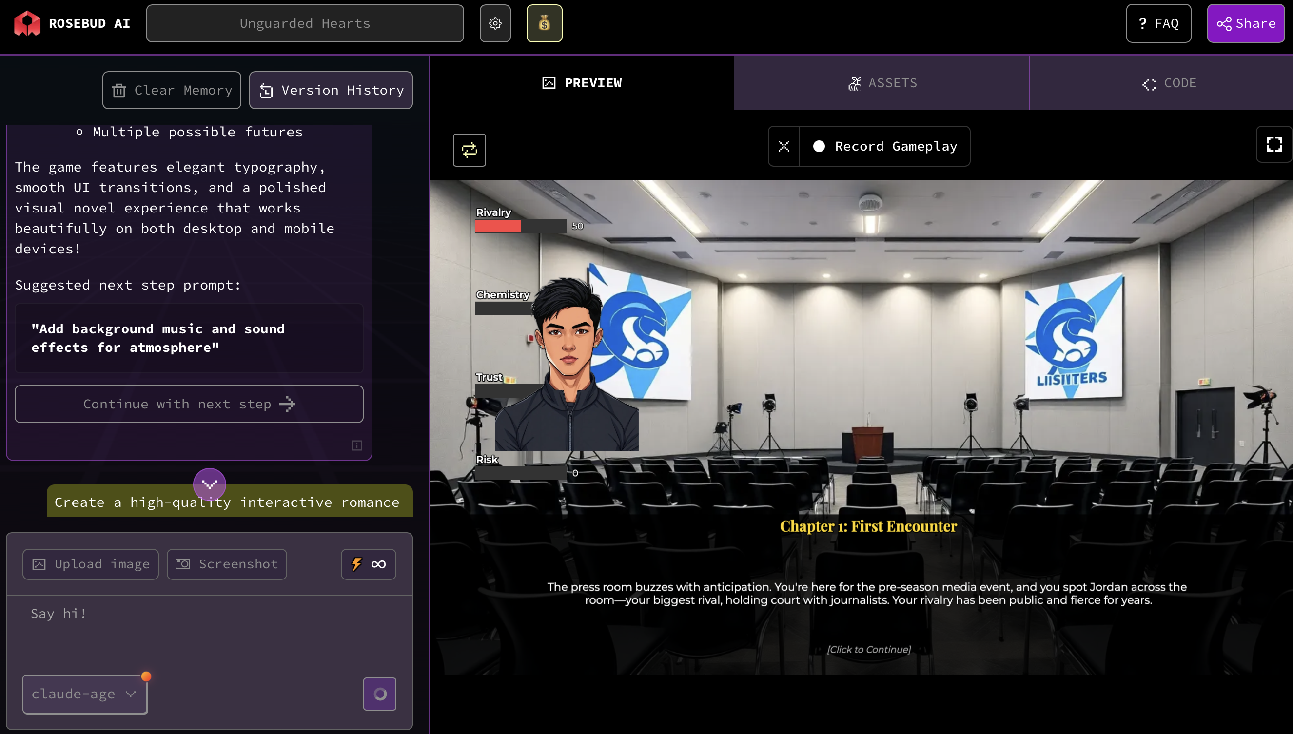 Below is a plug-and-play blueprint you can use in Rosebud AI, the best AI game creation tool for interactive romance games.