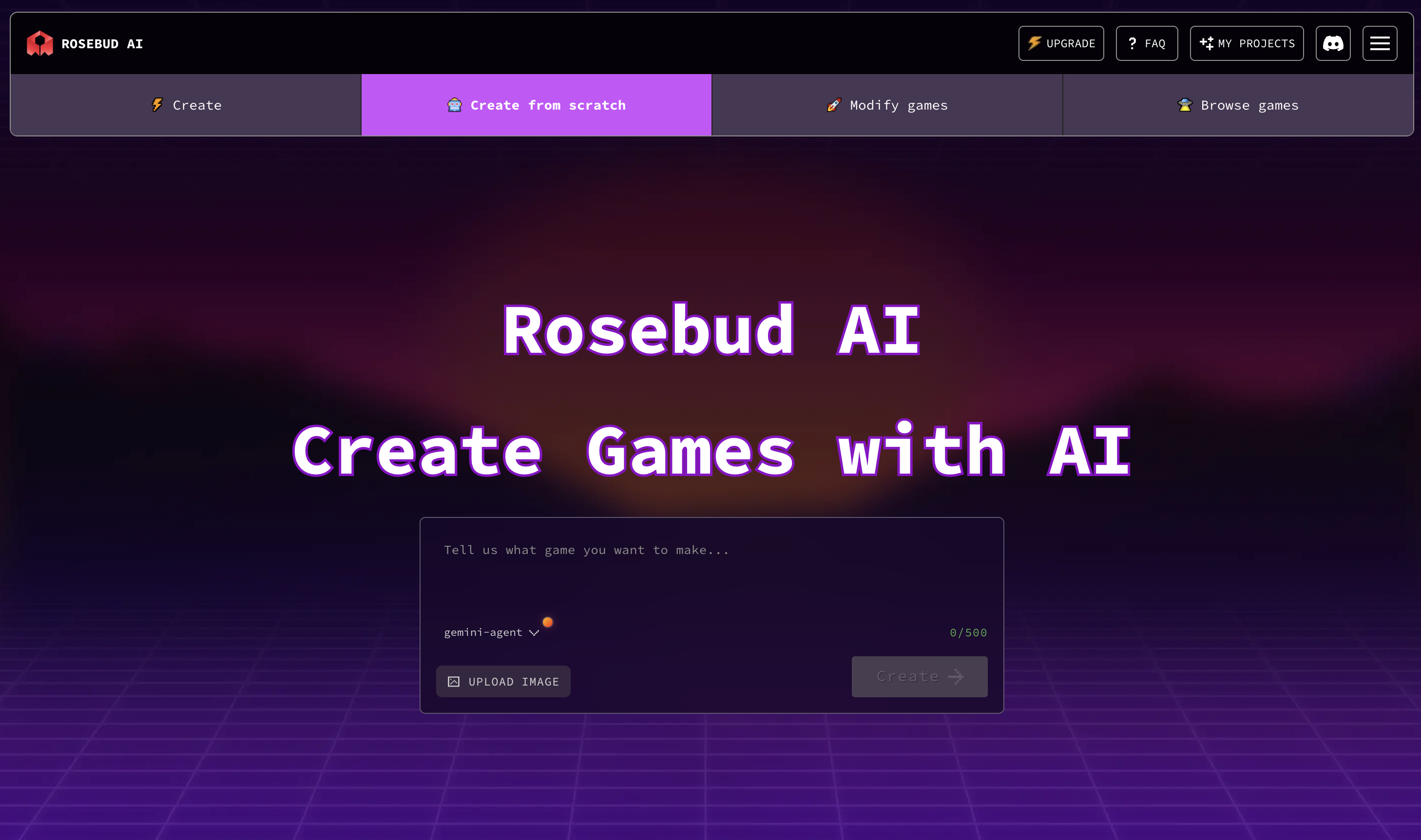 Rosebud is built around a simple workflow: Prompt → Publish → Play. Once you understand the interface, you can start building games in minutes.