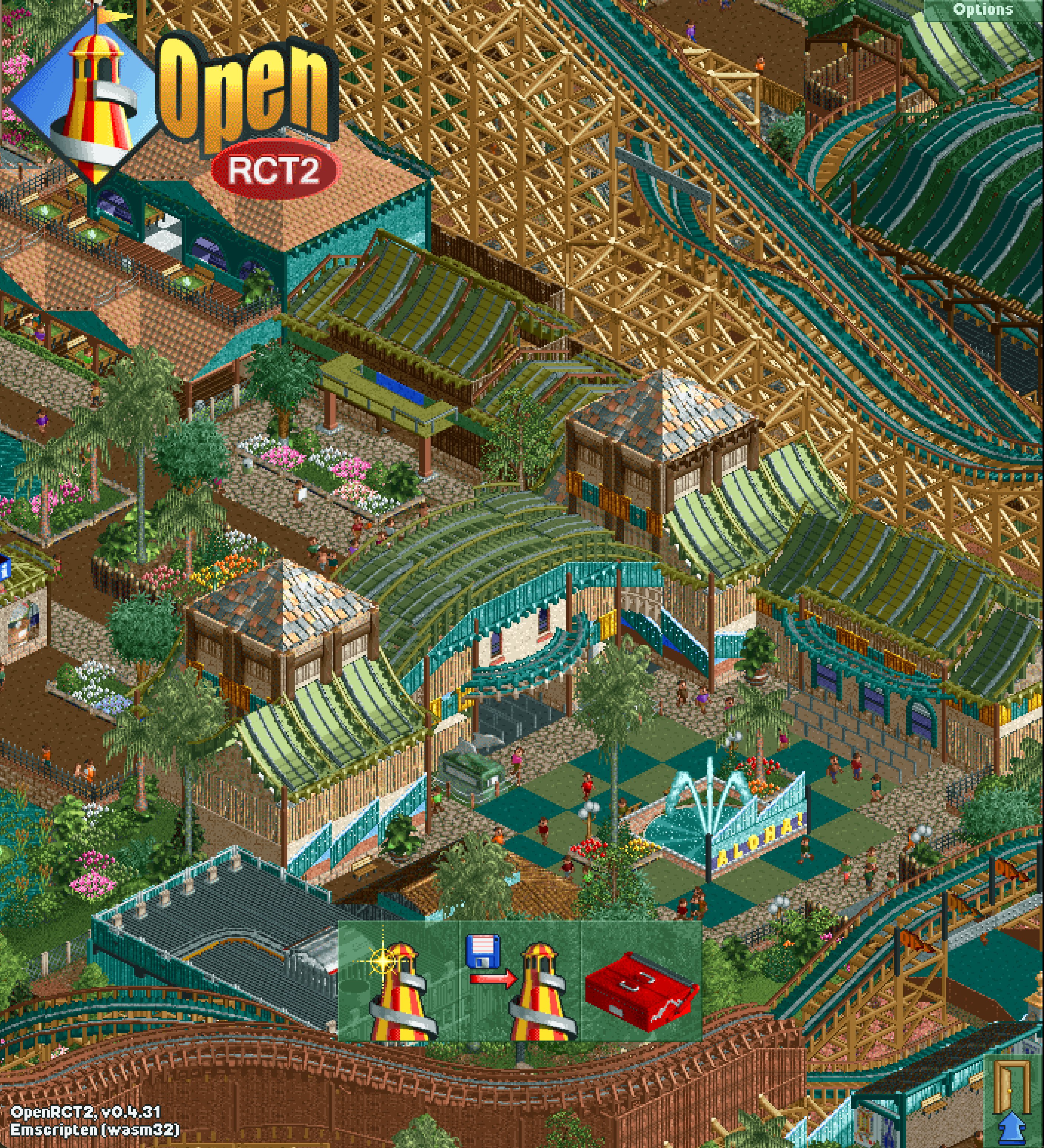 Play OpenRCT2 on Rosebud and build the ultimate theme park. This open-source reimplementation of RollerCoaster Tycoon 2 lets you design rides, manage guests, and grow your park empire — all free in your browser with multiplayer support.