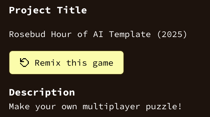 At the end of the lesson you will have a game website you can share and play with your friends and family. The lesson can be completed in an hour or spread over a week to create a game with more detail. With Rosebud, you can make a game just by describing it. It sounds like magic, but in this one-hour lesson, I will give you a step-by-step guide on how to create a multiplayer puzzle game from scratch, in under one hour! You don't need to download anything, and you don't even need to know how to code. All you need is access to the internet.